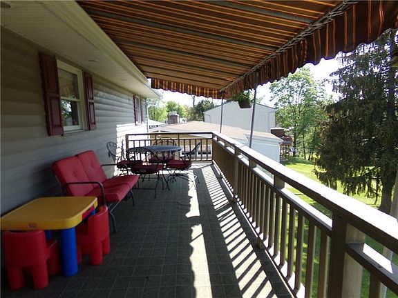 Your "happy place" this summer could be on the balcony, with awning, of this split level home on a quiet street. You will relish the view in any season! The home features 4 bedrooms and 2 baths. There are gas fireplaces in the living room and lower level family room. The bathrooms and kitchen are updated and you will enjoy the open concept of the kitchen, dining area and living room. There is a bonus room on the lower level that could be a home office or craft room. The home is serviced with a heat pump so you will have comfort in the summer with the central air conditioning. Relax on the porch swing on the lower decks.