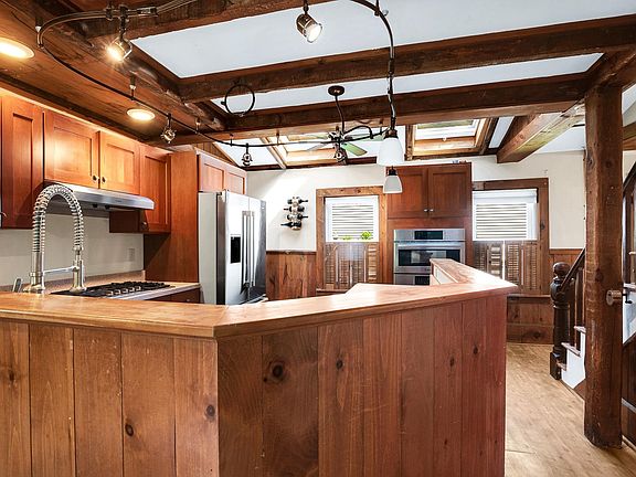 Steeped in New England charm and character, you'll fall in love with this cozy 1800's home in the heart of Rollinsford, NH. Warm cherry cabinetry, SS appliances and solid surface counters highlight the updated kitchen. The flexible floor plan allows for interchangeable living room/dining room spaces, plus there's a great new mudroom entry at the rear of the first level with a convenient laundry set up. There's 2 bedrooms on the 2nd level of the main home, plus an additional ensuite bedroom on the 2nd level of the rear section. The spacious yard is lined with mature plantings, garden space, a grapevine arbor and plenty of room to play! There's a private patio area, just outside the rear entry and an adorable screened porch in front. Additional features include wood floors, exposed rustic beams, gas stoves, updated baths, updated electric panel and a standby generator. Filled with years of love and joyful memories, this home is ready to welcome its next chapter—yours!