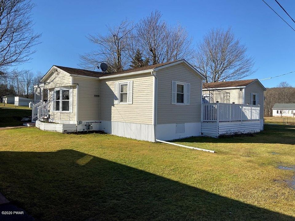 Extremely well-kept property on a level double lot with 420' of road frontage on three village streets. Original mobile home has 3 stick built additions for lots of living space including 3 bedrooms, den with laundry, and partially finished basement with family room. Large 2 car garage and utility shed. Lots of open sunny space all beautifully maintained. Pretty as a picture and a great move-in price too!