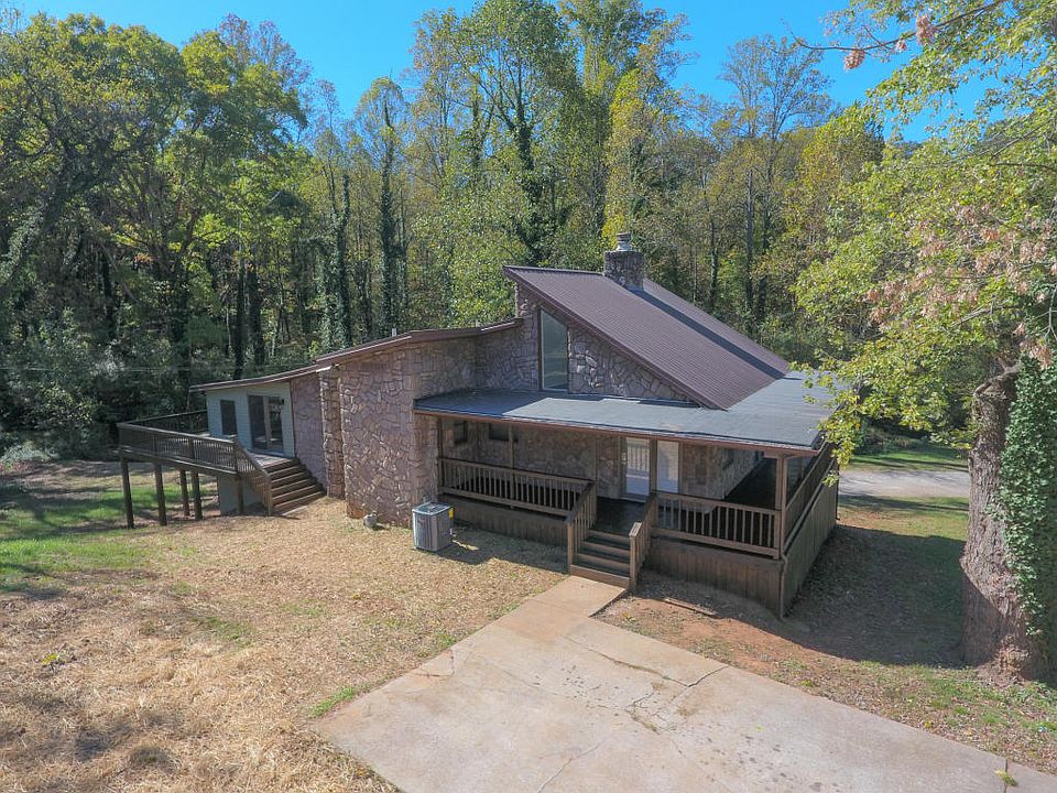 Come and see this beautifully renovated, custom built 80's home. It has all new flooring, paint, appliances, granite countertops, and so much more! The main level features a living area with cathedral ceilings, a stunning stone fireplace, lots of natural light, one bedroom plus the master bedroom which has an oversized walk-in closet plus access to a private sunroom and laundry room. The lower level has 2 additional bedrooms, a large bonus room, W/D hookups and 2 oversized single car garages. You can always step outside onto one of your 3 decks to enjoy the private, wooded acre of land with a natural spring fed creek plus an artesian pump house.
