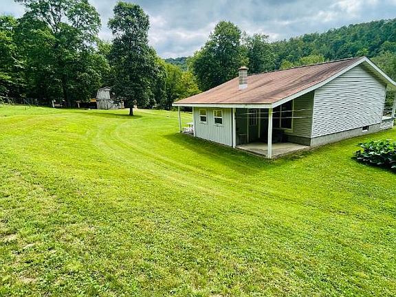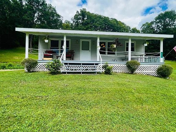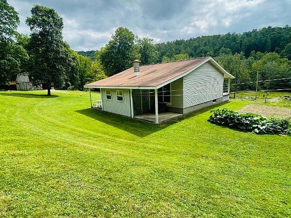 Amazing views of the tranquil and lovely countryside. Welcome to this two-bedroom house with a living room, eat-in kitchen, full bathroom, and dining space. Currently, laundry is located on the first floor. Enter a little den/office/other space by exiting the master bedroom's sliding glass doors on the back of the house. The views from your front porch are lovely. Circular driveway leads to a detached garage/workshop/barn. Find a newly planted orchard and shed on top of the property. Currently, a wood furnace heats this house, but there is also an fuel oil furnace in the basement.