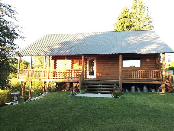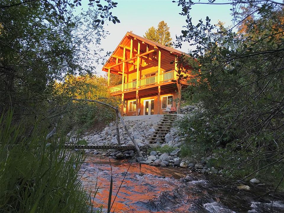 WATERFRONT Custom Log Cabin- Mill Creek Frontage. Watch abundant wildlife & take in breathtaking views of multiple mountain ranges from the wrap around deck or covered porch. Offering presents Montana living and recreation at it's best. Custom built 2005 log home boasts large logs w character, 2 Bed & office with space to expand bedrooms in walk out basement. Custom kitchen, radiant heat, large picture windows & more. Oversized entertainment den. Fully finished walk out basement. A cool breeze rustles through the lush landscaping as you sit with your coffee listening to the creek. Garage features 2.5 car w/ addl shop & covered parking. Open floor plan and beautiful kitchen. Features a 2 1/2 car detached garage/shop and additional covered parking. Mature landscaping w/ fruit trees. Public land a short ATV ride away to explore multiple lakes and recreation areas. Conveniently located close to town. Endless Possibilities!