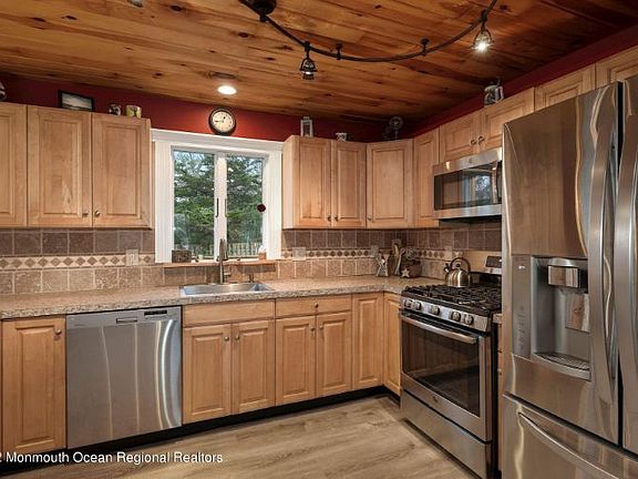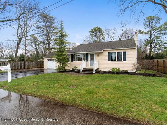This is a Coming Soon Listing and cannot be shown until April 10th. Move right in to this meticulous, well maintained ranch home with one car garage on a quiet dead end street just minutes away from Brick Beaches. Eat in Kitchen with breakfast bar, custom lighting, tile back splash and full appliance package. Dining Room is open to the Kitchen and offers recessed lighting, vaulted ceiling, and slider leading to a large deck with Hot Tub and new electric awning. Outdoor shower and fenced yard. Hardwood flooring in the Living Room and wood-burning stove. Attached heated garage with direct entry and garage door in front and back.