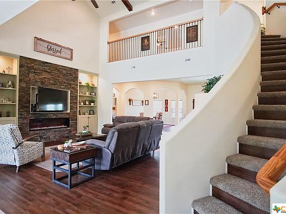 Find your peace & tranquility by following the winding driveway to your dream home. This retreat of a home sits on 10 acres of land w/manicured landscaping surrounding the home & your own man-made pond. Offering 5 beds, & 4 baths & ALL the bonuses to include surround sound speakers in kitchen, back porch, balcony, & side porch, electric fireplace, LARGE owner suite bed/bath/& walk-in closet, & a large media room for your family & friends to gather. The kitchen is a chefs dream that showcases a breakfast bar, island, stone countertop, copper sink, convection oven, barn door pantry, plenty of cabinet space & is all open to the dining & living rooms. Enjoy the picturesque view for your second-floor balcony just off of your media room. This beauty even has its own basketball court, pond & creek on the property! Just imagine the beautiful Texas sunrises & sunsets youll enjoy from anywhere on your property. Hurry & take a look at this beauty before someone else gets YOUR dream home.