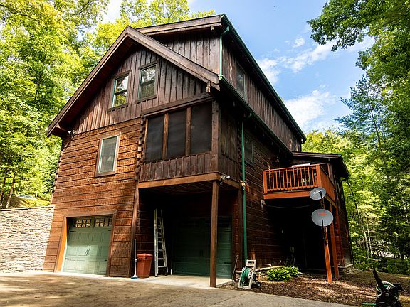Smoky Mountain Dream-Come-True! Rare find in the exclusive Kinzel Springs mountain community. Nestled on a prime 1.15-acre lot, shrouded by gorgeous hardwoods. The discerning home-buyer will appreciate this well-designed home with superior construction components and impeccable finishes. True log home on main level, soaring ceilings & stone fireplace, gorgeous hickory flooring and cabinetry, grilling deck, 2 screened decks,'rocking-chair porch'.Spacious loft serves as a bonus family room. The cozy Bsmt guest quarters(or rec room option)has beautiful knotty pine plank walls & a wood-burning stove. Add'l workshop/utility area added for the hobbyist! Enjoy amenities including water/sewer.Kayak mounts/pot rack don't convey.