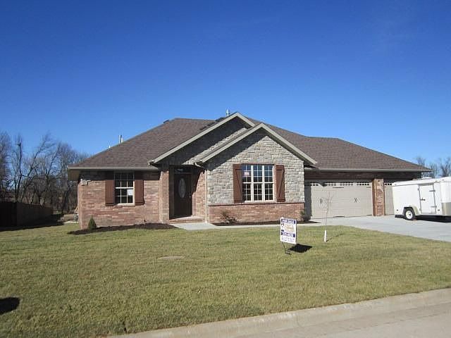 Brand new all Brick home and stone veneer with shutters features: 1800 Sq Ft, Three bedroom, two baths, three car garage, Formal Dining, Crown molding, wood flooring, Gorgeous kithcen with granite counter tops, Maple cabinets, and whirlpool stainless steel appliances. 9 ft. ceilings in entry and living room. 12x10 Covered Deck. Large yard with sodded front and landscaping!! Lots of storage in Attic..Located in quiet cul-de-sac!! Best New Subdivision in Nixa!!!