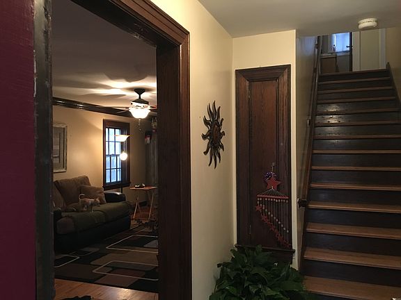 Adorable two-story cottage home situated in charming neighborhood near Elementary and Middle School. This home features a very spacious living room with decorative fireplace, formal dining room, eat-in kitchen, and partially finished basement. The three bedrooms are located upstairs with the full bathroom. The master bedroom has plenty of room for a combination bedroom living area or reading nook! Throughout the home you will notice the original wood floors and woodwork along with wood laminate flooring in the kitchen. The kitchen features an eating bar, pantry, additional storage, and appliances that stay with the home. Just off the kitchen is a half bathroom addition and a mudroom to and from the backyard. Downstairs in the partially finished basement is the rec room with decorative wood burning fireplace and the laundry and storage area. Schedule your private showing today to see all that this Charmer has to offer you!