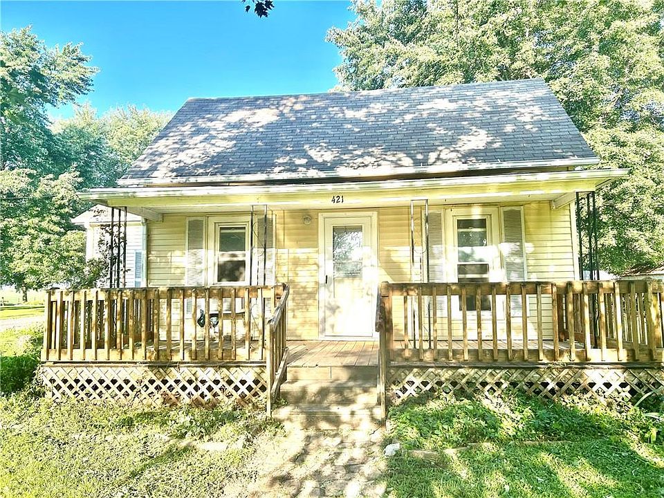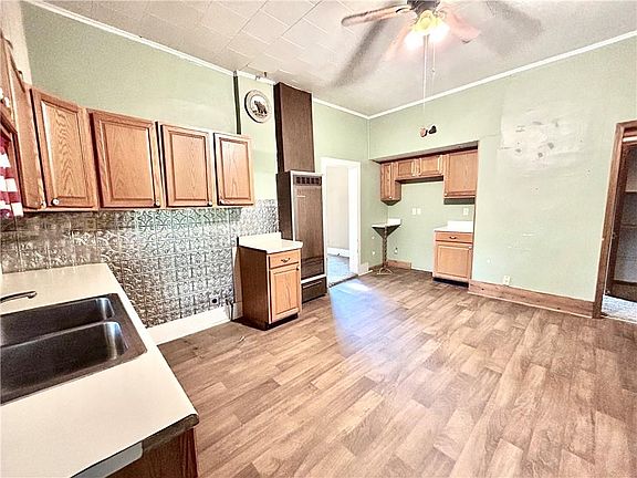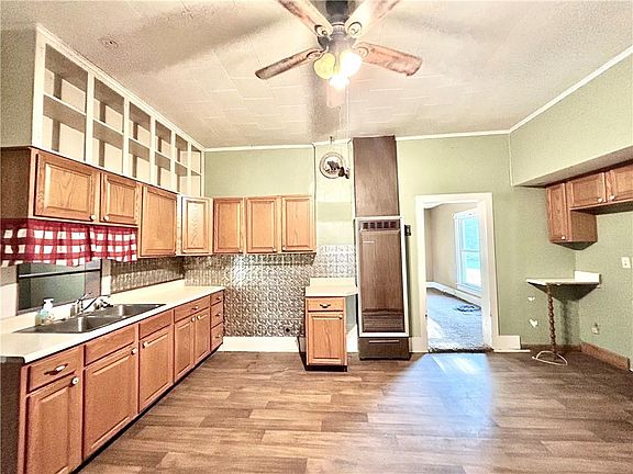 Four bedroom one bath ranch home. Has detached two car garage. Large kitchen with tons of storage. Walk in closet in bedrooms. Home has been a rental for many years. But could be a great family home as well. Nice corner lot with country views. Sold AS IS.