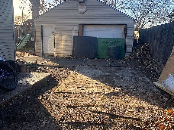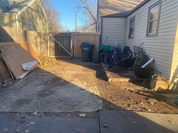 Single Family Home Large living room & kitchen. Kitchen has a lot of cabinet space, Laundry room is off to the back of the kitchen with washer & dryer hookups plus a smaller room off of the laundry room that has the hot water tank but can also be used for storage. There is a detached garage in the back with attic for more storage. The gate to the backyard swings open for easy access to the garage. Backyard is completely fenced in & the wooden swing set stays. It’s a great home for first time home buyers. Could use a little TLC and then would be perfect for single/smaller sized family.