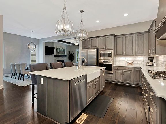 Welcome to effortless living in this stunning luxury patio home, where comfort meets convenience. With all exterior maintenance included in the HOA from mowing, landscaping, fertilizing, and snow removal to siding/painting, trash service, and even mulching flower beds your weekends are truly yours again. Step inside to an open-concept floor plan highlighted by rich wood floors and designer finishes throughout. The chef s kitchen is an entertainer s dream, featuring a massive island, soft-close cabinetry, walk-in pantry, and premium appliances. Luxurious master bath with quartz countertops, private water closet, and an amazing walk in 0 threshhold shower! Access to the main floor laundry as well! Enjoy year-round relaxation in the enclosed patio, equipped with a portable heater/AC for true all-season comfort. The expansive 3-car tandem garage is fully insulated has 11 ceilings and includes a mini split system perfect for a home gym, workshop, or temperature-controlled storage. Tech-savvy buyers will love the whole-home wiring for TVs, ethernet, and surround sound, while the spacious family room with a wet bar offers the ideal setting for gatherings and movie nights. A generous storage area completes this thoughtfully designed home. During their ownership, the sellers have added the 4th bedroom, the enclosed sunroom/patio and the minisplit system in the garage. Don t miss this rare opportunity to own a luxurious, low-maintenance home that truly has it all! **Sauna does not remain.