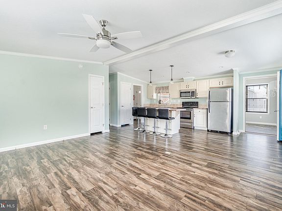 Well-cared-for one-story home located in the ShadowVillage 55 and over community. This property features an open floor plan with durable flooring throughout the main living area. The kitchen includes stainless steel appliances, ample cabinet space, and a large island with seating. The home offers 2 bedrooms and 2 full bathrooms, providing practical single-level living. A sunroom off the main living space adds flexibility for everyday use or hobbies. Outside, the property includes a covered carport, a large shed for storage, and a fenced yard. A ramp leads to the entry, offering convenient accessibility.