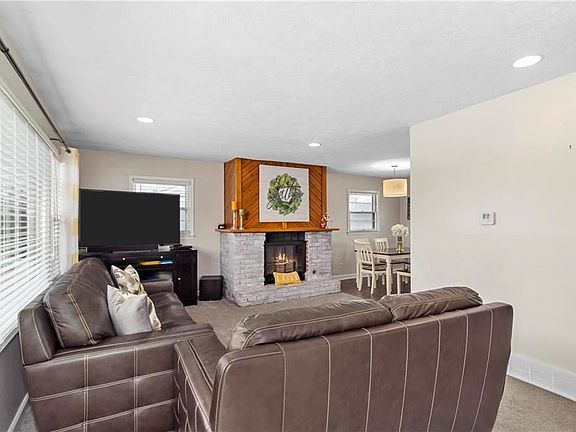Welcome HOME. This adorable 4BR, PLUS bonus room, split level has so much NEW. Two living areas w/hardwoods throughout, new carpet, new interior paint, newer HVAC, updated full bath, new front and back doors, New sump pump and more. Gorgeous fireplace in great room, second sitting area and large bonus room in basement, perfect for playroom or office. Nestled on a large fenced lot with huge deck, outbuilding & basketball area. Double driveway for extra parking. Vast laundry room with tons of storage.