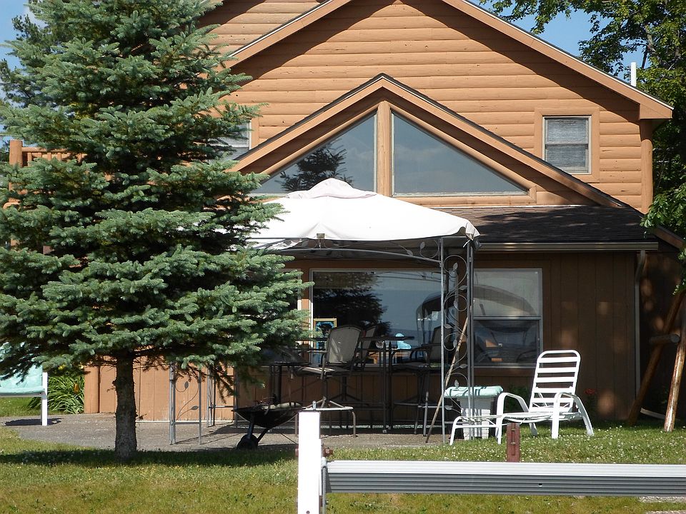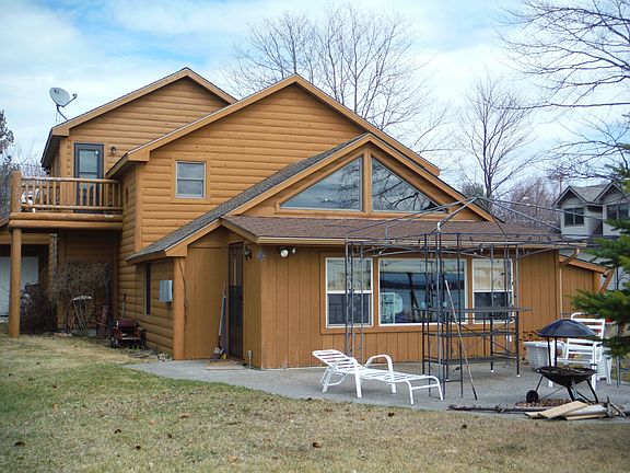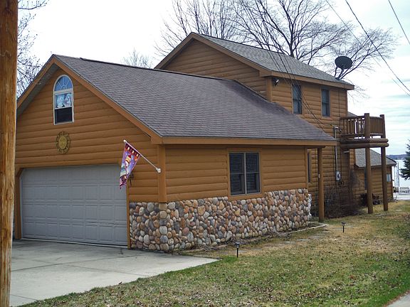 Perfect lakefront getaway with rustic knotty pine interior and cedar log exterior. Home offers a warm and cozy up north feel. This adorable property has an open floorplan, natural stone fireplace, master suite with jetted spa tub, beautiful log staircase, maple cabinetry, vaulted ceilings and so much more. Plenty of room for the entire family! Enjoy the peace and solitude while watching the beautiful sunsets from your back patio and listening to the waterfall/pond just steps away. This home would be an incredible getaway or a perfect year around home. Some furnishing are negotiable. Must see to fully appreciate.
