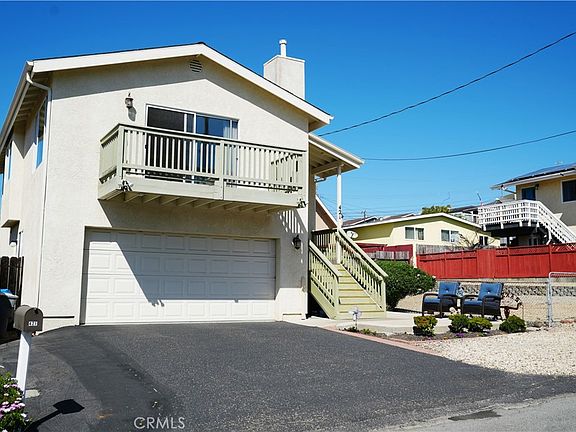 This "Turnkey" spacious and newer home on a hill overlooking Morro Bay Rock offers three (3) bedrooms, two and a half (2 ½) bathrooms, a fireplace, and an upstairs balcony for outdoor enjoyment with beautiful ocean views. The kitchen counter offers a breakfast bar, stainless steel appliances, and plenty of cabinet storage with a large pantry. The main unit upstairs has a large, bright, airy living area offering a half bath with a kitchen and an extra-large master bedroom with a full bathroom. The downstairs has two (2) bedrooms and a full bathroom with a laundry room. This home also features a fully finished two-car garage with ample storage. This house is in a great location, close to town, within walking distance to the beach, and with Morro Bay's wonderful amenities. This house is a "Must See".