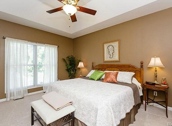 Fantastic villa in the desirable St. Andrews neighborhood! This 3 bedroom, 3 bath villa sits on a cul-de-sac on one of the community's premier home-sites. The lot backs to a thick tree line offering privacy and a gorgeous wooded setting. With the builder finished lower level, this home offers approximately 2,400 square feet of finished living space. Features include Andersen double tilt windows, 9 foot ceilings, vaulted ceilings in the Entry-Great Room-Kitchen-Dining Room, 2 direct vent fireplaces, 42 inch Maple cabinets with crown, hardwood flooring, bay window in the Dining area, ceiling fans, Luxury Master Bath with separate shower and jetted tub, double bowl vanity, his and her closets, coffered ceiling in the Master Bedroom, screened in porch with open deck for grilling and steps to a large patio. The oversized garage has an 18 X 8 insulated carriage style garage door. The finished lower level has a large Recreation-Family Room, Bedroom, full bath, huge closet and storage. A monthly fee includes lawn-landscape maintenance, snow removal, water for the irrigation system and some insurance. Desirable neighborhood with walking trails throughout. Enjoy nearby shopping, grocery stores, restaurants, services, recreation, The Katy Trail and Historic Main Street in St. Charles. There is easy access to Highways 70, 370, 94 and 364 as well as Lambert International Airport.