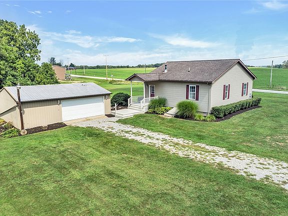 Country charmer offers lofty single floor living with 10' high ceilings. Move in ready. Brand new kitchen appliances and flooring. Maintenance free porches. 2 car garage with work areas and storage. Level lot 2.257 acres.