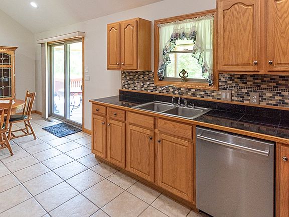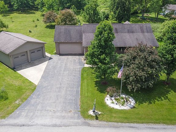 The home and extra 4 car (Amish built)garage sit on the 2 build-able lots with the other 4 lots being green space (non-buildable). If it's privacy you're looking for this is the home for you! Built (for himself) by a reputable contractor this home features; cathedral ceilings in the living room and kitchen, built in gas fireplace and recessed lighting, additional room off the master with laundry on main floor,tank-less hot water heater, master en-suite bath, full partially finished walk out basement, cement front porch, covered back porch with blinds and LAND!