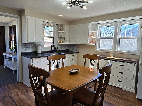 Stylish & Move-In Ready Bungalow ! Step into this modern and inviting 2-bedroom bungalow, freshly updated with sleek light fixtures, new hardware, and with recently interior paint this home is so easy to fall in love with! The open-concept living area flows seamlessly into a bright eat-in kitchen, while the sunlit back entry, lined with windows, offers a relaxing retreat with scenic backyard views. Free standing cabinets in kitchen are included. The finished lower level is a versatile space—ideal for a home office, creative studio, fitness area, or cozy lounge. Recent upgrades include a new forced air furnace, central air, a 200-amp circuit breaker, new exterior doors, and a freshly stained deck (2023).