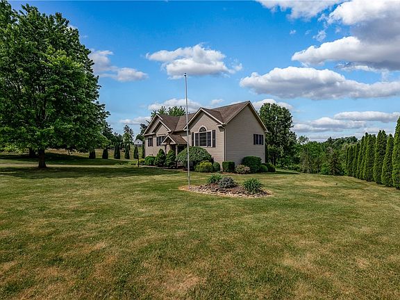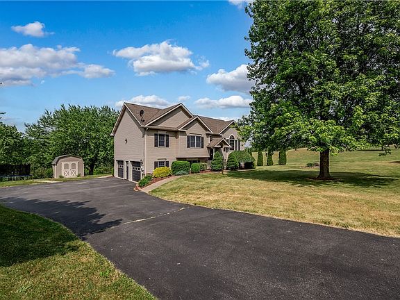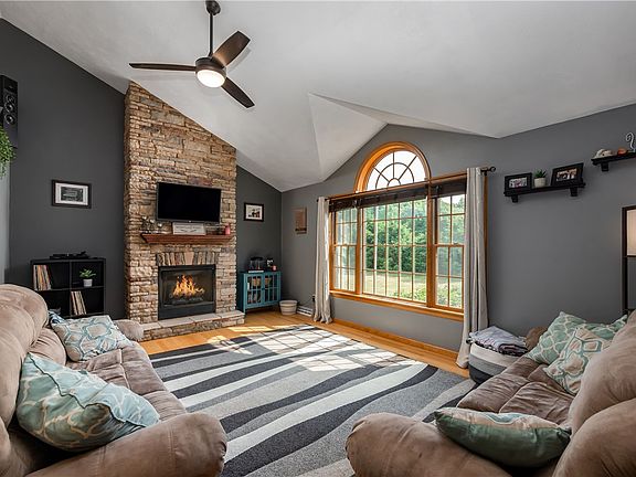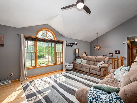 Stunning home situated on just over a 1 acre lot with a beautiful view of the country. The front and rear of this home overlook farm fields, trees, and off in the distance some horses. Great curb appeal offers the best first impression when you arrive to tour this home. Upon entering you will find a clean and well kept offering an abundance of hardwood flooring throughout, a stone gas fireplace in the living room, double pane windows, an updated kitchen with SS appliances and backsplash which walks directly out to a large wooden deck. 3 bedrooms total on the main including an en-suite primary and 1st floor laundry. The lower level is fully finished featuring the 4th bedroom, a full bathroom, and an amazing family room with a wet bar. From the family room a quaint concrete patio is offered for relaxing or entertaining your guests. HVAC and hot water all have been replaced within the past couple of years. 1 year home warranty is offered.