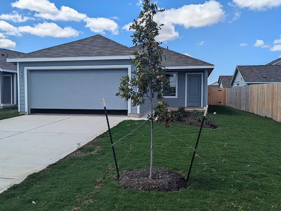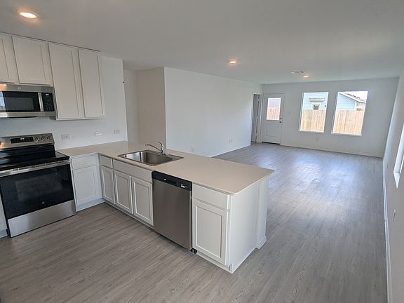 Beautiful new 1 story home - walk to community pool, playground, includes all appliances & washer/dryer, refrigerator. Vinyl plank floors thruout except carpet in bedrooms, open floorplan, fenced yard. Easy access to IH35, nearby restaurants Tenant responsible for water, wastewater, trash and electricity. Wifi available for $45 per month.