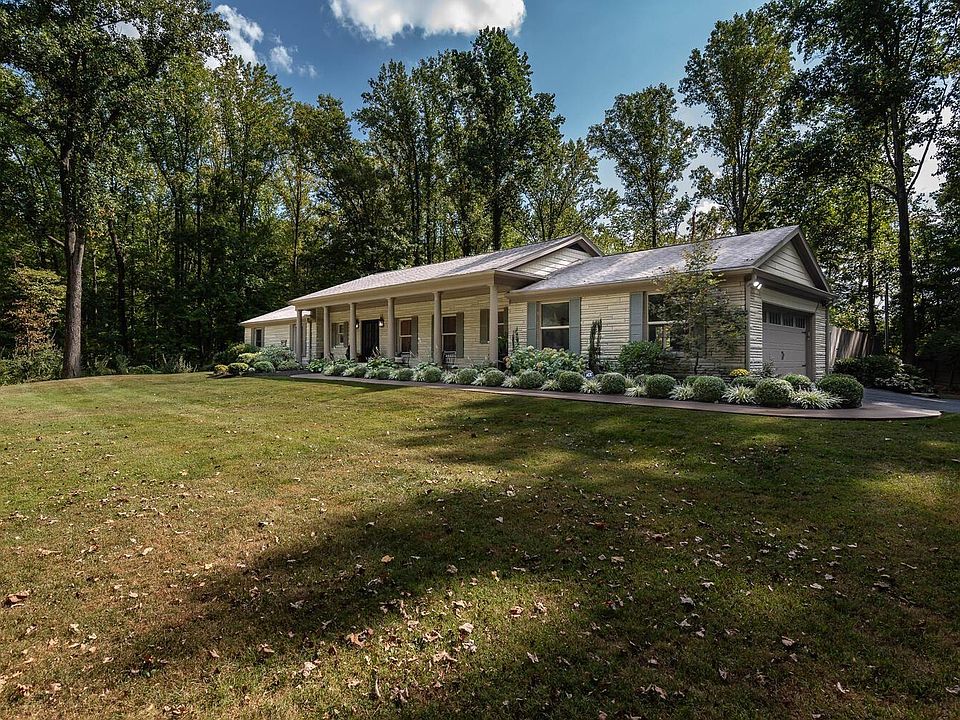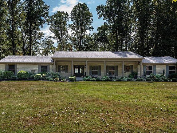 Sitting on top of the hill in well-established Brook Knoll, this classically designed ranch style over finished basement offers 4,256 sq ft and many recent updates throughout. The 2,500 sq ft main level includes 3 bedrooms, 2.5 baths, laundry, 2-car garage, kitchen, dining, breakfast nook, and living area with newly added gas fireplace all on one level. With abundant privacy via 2.8 acres lined with mature trees, this home includes a heated in-ground pool and hot tub, covered back patio, built-in fire pit and large fenced-in backyard for entertaining. Hardwood floors run throughout the main living areas while the recently renovated kitchen has amish-crafted cabinets, over-sized island with quartz countertops and new stainless steel appliances. All 3 bathrooms have been renovated from top to bottom with comfort and detail in mind. The 1,600 sqft basement includes an additional large living and game room, bedroom, home office or gym, and large recreational room or storage space. The professionally maintained landscaping and brand new french doors out front give this home tremendous curb appeal when driving by.