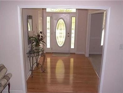 This immaculate home welcomes you with a charming covered porch and hardwood floors as soon as you enter the foyer. Open and airy the living room/kitchen combo is great for family or entertaining. The living room has a beautiful gas fireplace, ceiling fan and access to the back deck. This is open to the spacious kitchen with tons of cabinets, a pantry and a breakfast nook! Split floor plan has 2 nice sized bedrooms and full bath in addition to a master suite with tray ceiling and an adjoining bathroom with a walk-in closet, linen shelving, dual vanity sinks & custom tiled tub/shower. This home also features a large private yard with a huge open deck perfect for outdoor entertaining. Pets are welcome with a modest $100 pet fee (no cats please). Make this a must see!