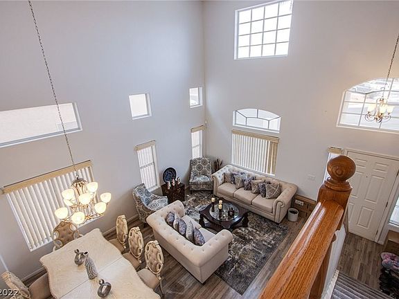 5 Bed/5 Bath A MUST SEE! A JEWEL IN THE DESERT! This property will not last. This home has been immaculately keep with two primary bedrooms, one on each level, the upstairs primary has a balcony facing the back of the home with city views. The lower level primary is in the back of the home off of the kitchen. Newer vinyl tile floors throughout the wet areas with plush carpet in the living room, family room, loft and bedrooms. In the loft/den area there is a wet bar for entertaining. It's an entertainers paradise. The kitchen has upgraded stainless steel appliances with white cabinets and Restoration Hardware door pulls. The kitchen also has a nook that can be used as a coffee bar or mail center. The center island offers additional dining. The living room and family rooms are separate with a second wet bar in the family room. The front yard offers grass and solar lighting, while the back is lightly landscaped with grass and a half basketball court. Great home for shared living.