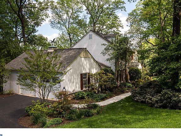 CLASSIC STONE 4 BR, 2.5 BATH COLONIAL IN THE HIGHLY DESIRABLE COMMUNITY OF ROUNDHILL. The home is situated on a ~ acre corner lot in the heart of a quiet 32 home St Davids neighborhood. Formerly part of the Ravenscliff estate, the area is known for its marvelous "Duck Ponds", the 48-acre open space of The Willows Park, and acclaimed gardens of Chanticleer. A perfect house for gracious entertaining and comfortable family living, it has been lovingly maintained by its original owners. Note the towering trees as you walk the curving flagstone path to the front door. Inside find a traditional floor plan with slate floor center entrance hall. Turn right and enter the spacious living room bathed in natural light from the bay window with Southeast exposure. Turn left and you are in the formal dining room, perfect for a dinner party. Walk straight and make yourself at home in the family room with wood burning fireplace set in a fieldstone hearth overlooking the wooded, private rear yard. The kitchen is the heart of any home and this is no exception with cherry cabinetry, Corian countertop, new electric cooktop, butcher-block center island, breakfast room, and sliding door to the large rear deck, perfect as a private, outdoor entertaining space. A separate office/library with one entire wall of floor to ceiling built-in bookshelves is conveniently located off of the kitchen as is the laundry/mud room with interior access to an oversized two-car garage. Upstairs is a large master bedroom suite with his and hers walk-in closets, newly tiled master bath with shower, and separate makeup area with second sink. Three additional bedrooms and tiled Hall Bath with tub and Travertine countertop complete the second level. Downstairs is a finished, walkout lower level, which spans the length of the house and includes a media area, billiard room, and unfinished workshop/storage area. This is a real plus, significantly expanding the family living space opportunities. The floors are solid oak hardwood, the windows are Pella, and the roof is tapersawn cedar shake, maintained by the Cedar Roof Company. New A/C - May 2017. This property offers the new home owner the perfect value combination: great neighborhood, well-maintained condition, the award winning Radnor Schools; and easy access to all major highways, the Village of Wayne, and rail transportation into Center City Philadelphia. A MUST SEE HOME IN A NEIGHBORHOOD WHERE PROPERTIES RARELY BECOME AVAILABLE FOR SALE!