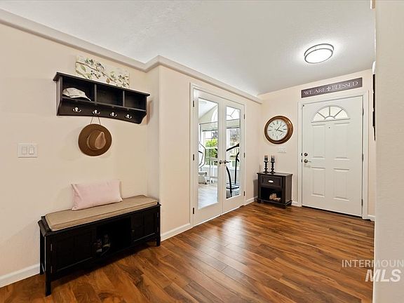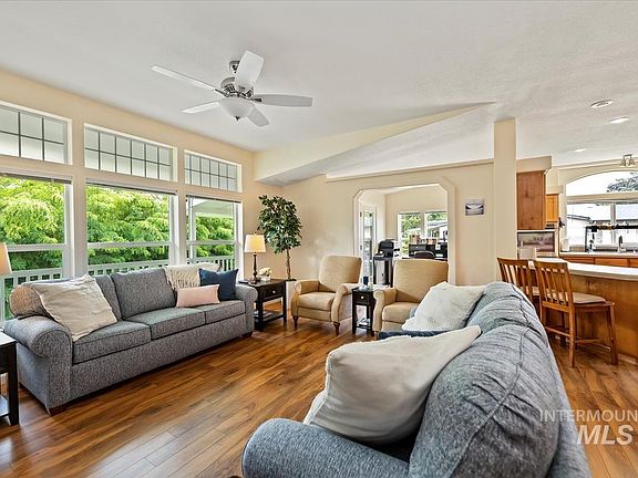 Welcome home to Brooke View, Boise's premier 55+ gated land lease community! Single-story living close to shopping, downtown, medical services and outdoor activities. Situated on the water with beautiful mature landscaping and you won't believe this is a manufactured home! Open floorplan with lots of natural light flooding in through the windows. New high efficiency HVAC, water heater with circulating pump, new roof 25 year roof, stovetop 36", stainless steel-bowl kitchen sink, Bosch dishwasher, French doors and privacy curtain for 4th bedroom or can be used as a front living room, and garage door with 2 inches of insulation, and all done in 2022/2023. Not to mention all solid surface flooring with no transitions inside the home, oven, reverse osmosis at kitchen sink, refrigerator, murphy bed (king), exhaust fans in master bathroom, new toilets and all new faucets at every sink in 2021. Exterior paint completed in 2020. This is a must see!
