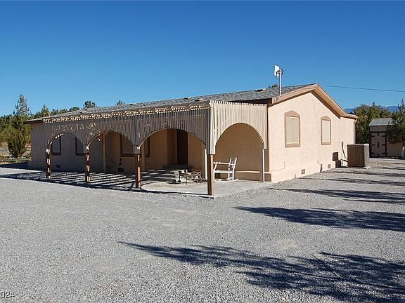 This 3-bedroom, 2-bath manufactured home in central Pahrump offers a comfortable and well-maintained living space with a variety of features. The home boasts a fully fenced yard with gated access from both Donner and David Streets, providing added convenience and privacy. Recent upgrades include a new roof installed just one year ago and a well that was redone in 2023, ensuring reliable water supply. The septic system was also inspected and pumped in 2023, The well is housed in its own well house, providing protection and easy access. Additionally, the property comes with two large storage sheds, perfect for storing tools, equipment, or recreational vehicles. With plenty of room for toys and belongings. The location is also ideal, being close to shopping centers and both the local and VA hospitals, making daily conveniences easily accessible. Whether you're looking for space to spread out or easy access to nearby amenities, this property checks all the boxes.