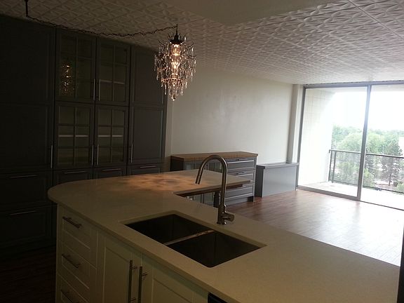 9th floor downtown loft boasts views of the mountains, downtown Fort Collins and the outdoor swimming pool. This unit has been masterfully redone by the architect owner. No detail has been overlooked, a gorgeous designer ceiling was painstaking installed to make this unit one of kind. When your eye comes down from admiring the ceiling you will see the open concept design that sets this unit apart, all new stainless steal appliances, a large quartz counter top creating an eat-in kitchen, brand new modern cabinetry that expands beyond the kitchen to offer a built in china cabinet and entertainment system shelving. The new bathroom has been redesigned to open up the space and the old finishes were torn out and replaced with beautiful white subway tile to compliment the clean, modern boutique décor. Most units have one parking spot, however this unit has two spots that are just a few steps from the main floor entrance. Two elevators service the building so living on one of the upper floors is easy. There is also an extra storage locker in the basement for odds and ends or Holiday decorations. There are two pools, indoor and outdoor. The HOA includes, high speed internet, cable, A/C, heating, workout room access, indoor and outdoor pools, hot tub, saunas, and trash removal and access to a rental unit for $35 a night for your family and friends. The remodel will be complete on 7/23. Call to schedule a showing 970.690.0624.