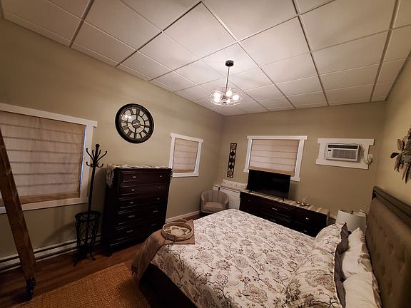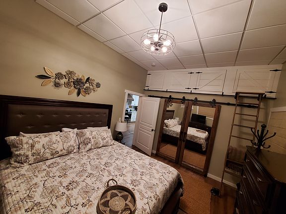 Please refer to the calendar for availability. Furnished! 1,000 sq. ft. upstairs apartment/commercial space on Main St. in historic downtown Kalispell. Make working from home a joy. This unit features 1 large bedroom. The master bedroom has a large closet, a king bed, a beautiful dresser, and bedside tables. The office includes a one-of-a-kind sofa Murphy bed with a bookcase and a queen memory foam mattress. The separate entry area includes a professional desk system and French doors leading to a covered deck. A 10-ft solid barn door provides a private client entry, ensuring privacy for the living space. The full bathroom has an extra-large tub/shower combo. The spacious kitchen offers ample storage and is stocked with most essentials for cooking. It includes a glass-top electric stove, dishwasher, side-by-side refrigerator with ice maker, microwave, and garbage disposal. The kitchen features a tile wall and backsplash. The living room includes a flat-screen TV and an electric fireplace insert. A shared washer/dryer room, with a separate entrance, includes an ironing board, iron, drying rack, Shark vacuum, mop system, broom, and cleaning supplies. Electric baseboard heat and wall A/C in the bedroom. City water/sewer, Wi-Fi, parking, trash, and snow removal are paid by the owner. The tenant pays electricity, which is very reasonable. Enjoy the downtown convenience of being close to all amenities, just 10 minutes from KRMC. Keyless entry, beautiful rail-gliding barn doors, and a homemade bar set this space apart from others. Sleeps 2-4. Lease is negotiable at $2,500.00/month with a $2,500.00 security deposit. No pets and no smoking on the premises. Please refer to the calendar for availability. Managed by CoRental Property Management, Inc.