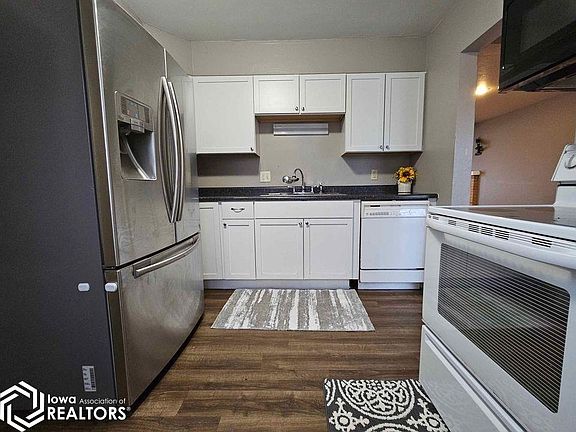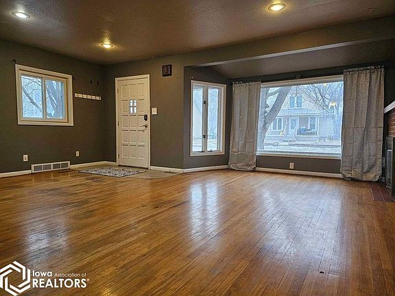 This charming ranch style home sits in the heart of Mason City. The home features 2 bedrooms and 1 bath and 932 sf of living space. There are two bedrooms and a full bath on the main level plus an open living room/dining area for entertaining! Living room features can lighting, large windows, and original hardwood flooring. Updated kitchen boasts newer white cabinetry, updated flooring, & laminate countertops. There is a sliding glass door leading to the back deck, with a sprawling fenced in yard! There is also a large DOUBLE attached garage with additional space for a workbench & roof is only a few years old. Don't miss your chance to call this gem HOME.