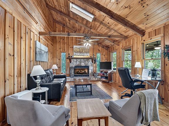 ENJOY THE MOUNTAIN LIFE! Escape to this peaceful mountain retreat offering charm, comfort, and panoramic views. This inviting cabin features an open-concept floor plan with 2 bedrooms and 2 bathrooms, highlighted by vaulted ceilings with exposed beam rafters, hardwood floors, and a rock gas log fireplace that creates a warm and welcoming great room. An extra-wide covered and screened sleeping porch spans the full length of the home, providing the perfect space to relax and take in the beautiful mountain views. The cabin is privately nestled on approximately 1.09 gentle, usable acres with easy access and no steep roads. Interior features include tongue-and-groove wood walls, upgraded white custom kitchen cabinetry, stainless steel appliances and sink, and thoughtful details throughout. Exterior highlights include a metal roof, fire pit area, and ample outdoor space to enjoy the natural surroundings. Ideally located less than 15 minutes from downtown Blue Ridge and under 10 minutes to downtown McCaysville, with close proximity to hiking, mountain biking, whitewater rafting, kayaking, and more. Golf enthusiasts will appreciate being within minutes of Old Toccoa Farm Golf Club and Copper Basin Golf Course, and less than 30 minutes to Murphy, NC and Harrah's Casino. This home is set up for short-term rental use and may be purchased turn-key, fully furnished. Easy access, strong rental potential, and a prime mountain location make this a fantastic investment or personal getaway. Don't miss this opportunity!