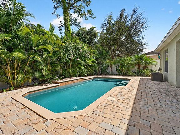 Pool homeLush tropical landscapingBright open floor planBar seatingNatural lightModern appliancesAmple cabinetry