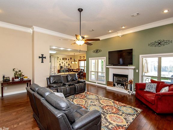 All brick 4 bedroom home with over 2000 SqFt with beautiful handscraped hardwood floors on the main living areas. 12' ceilings with crown molding through out. House boasts spacious kitchen with granite counters and gorgeous cabinets that were redone in 2017. Gas fireplace in main living. Master has 3 large walk in closets with an ensuite that includes jetted tub and separate shower. Covered patios with pergola added in 2018 with sand fire pit.