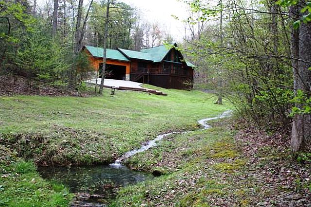 Awesome 2/2 log home w/sleeping loft. Home features grand stone fireplace, pine floors, exposed beams, laundry room and spacious master suite with walk-in closet. You will love this beautiful log home with 2 car garage sitting on 8.49 acres with stream and pond. It is private with no restrictions and wild life abounds. Large fenced side yard, Rev hook-up, back deck and front porch highlight outdoor living. Come take a look.