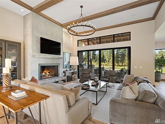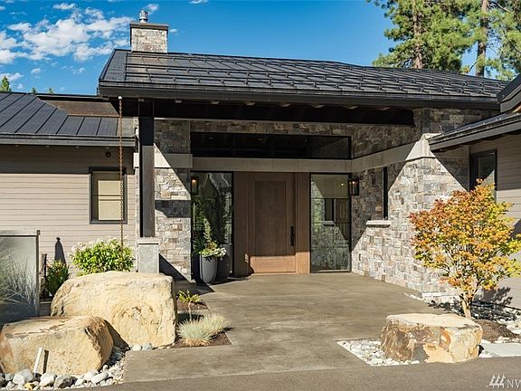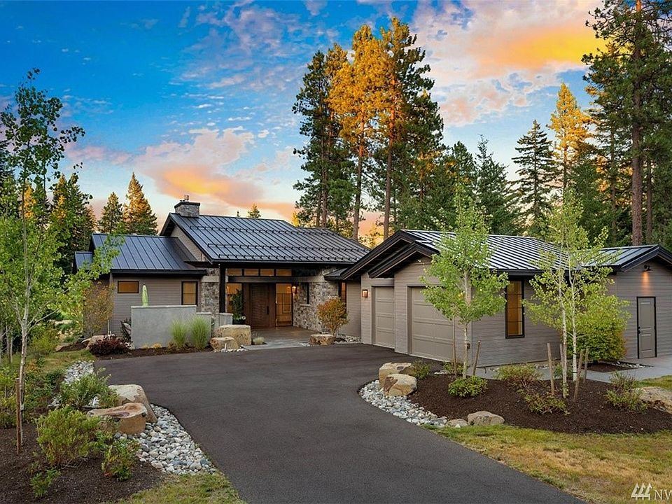 Fully furnished, mountain modern lodgecentered around a Great Room design. Main floor master bedroom enclave w/ spacious wood bookshelves, deck access, fireplace, and soaking tub. Gourmet kitchen w/ Thermador appliances centered around a 9' granite island. 650+ SF elevated deck overlooking the 8th green of Suncadia's Rope Rider golf course w/ built-in BBQ and heaters. Custom details incl. upgraded lighting, 8' custom solid core stained doors, and 8" wide plank wood flooring. Radiant heating.