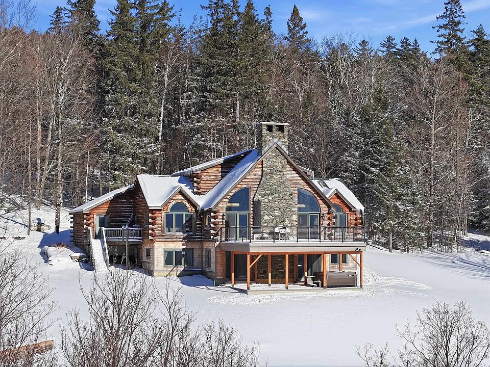 Welcome to the Mad River Valley, where mountain vistas, four-season adventure, and Vermont charm converge. Only 8 minutes from Sugarbush Resort, this property offers one of the most panoramic views in the entire valley. Set on 10 private acres with a heated inground pool, this hillside retreat is designed for year-round enjoyment. The beautifully updated log-style home features a new two-level mountain-facing deck, fresh cedar shake siding, handsome porticos, custom stained glass lighting and two newer ¾ baths on the lower level. Inside, the open layout is warm and inviting. The great room with its soaring ceiling and stone hearth is the heart of the home, ideal for cozy fireside gatherings. A chef’s kitchen with granite counters, stainless appliances, and a walk-in pantry opens to the dining area for effortless entertaining. A quiet den offers views of the ski trails, while the essential Vermont mudroom keeps gear organized. The private primary suite sits in a loft with a balcony overlooking the great room and mountains. The lower level includes three bedrooms and two updated ¾ baths, giving family and guests plenty of space to unwind. Step outside to the expansive new deck and take in the panoramic vistas. Grab your Binoculars and watch your family friends ski down Mount Ellen. There’s no better spot to enjoy Après ski time on the deck after a fun ski day. Watch the shooting stars light up the sky overlooking Mount Ellen, Mad River Glen and Sugarbush. Make memories here.