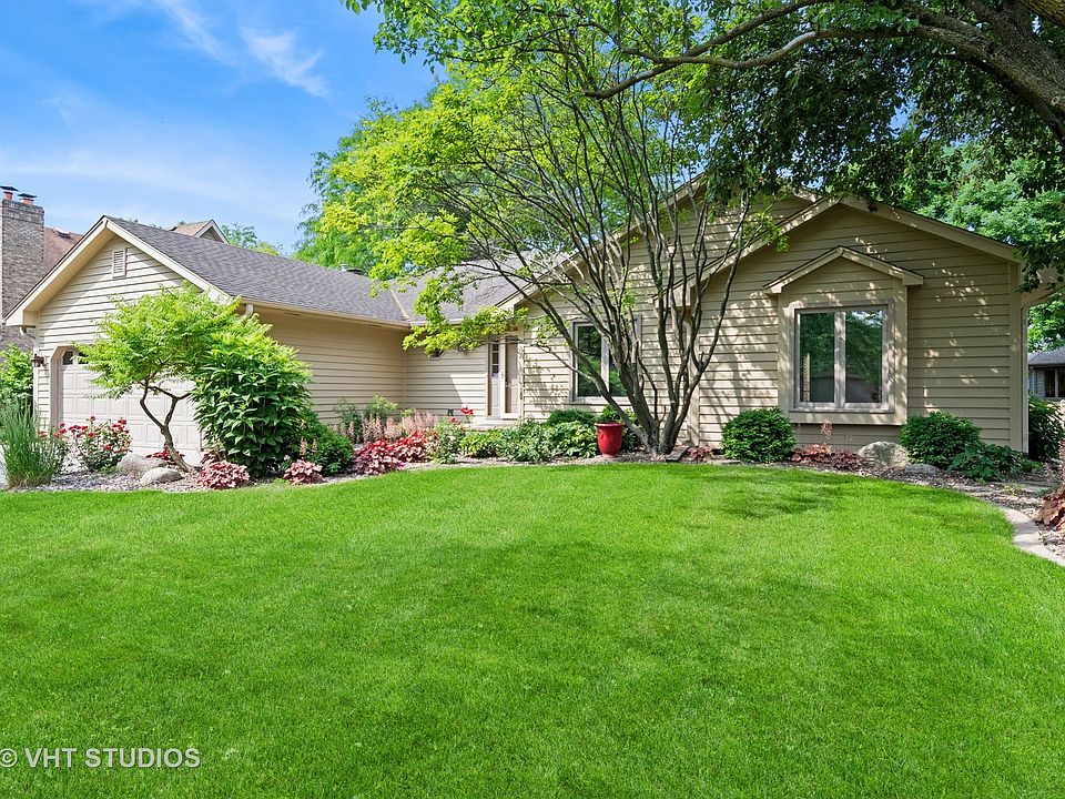 Welcome home to your ranch! This beautiful, maintained home in the prestigious Mill Race Creek community is 2092 square feet of quality. Kitchen with oak cabinetry, updated white appliances, ceramic backsplash, planning desk and the kitchen opens to the family room. The family room features wet bar & oak cabinets, wood burning fireplace, coffered ceiling. Family room leads to the four-season sunroom. Hardwood flooring runs from the foyer through the kitchen, dining room, and family room. Generous size bedrooms. The Master bedroom offers a tray ceiling with paddle fan, walk-in closet. Master bathroom has updated lighting, separate shower, Double whirlpool tub. Over-sized deck with new retractable newer awning. Full basement with a finished multi-use room, the balance of basement ready for the new owner to finish. Six-panel doors, stained wood trim package that has recently been refinished. Great community, convenient to shopping, schools, parks and dining. Selling "As-Is"