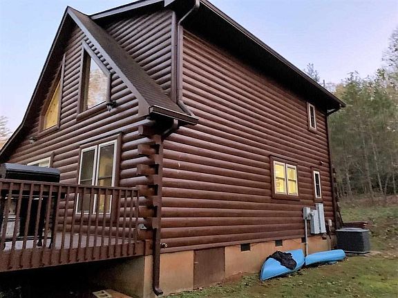 Well cared for log cabin in the desirable community of Sweetbriar Farms. Home is privately located in the back of Sweetbriar North within walking distance of community park that has frontage on Cedar Creek. Home has been well maintained & is in move-in condition! Features include full covered front porch with wrap-around side deck, 2-story Great Room, dining area, kitchen w/breakfast counter & new lighting, new stove, main floor BR & bathroom, primary BR w/loft & full bathroom upstairs. Loft is perfect for an office and/or sitting room w/potential for a 3rd BR. 1-year old Carrier heat pump. Gutters w/leaf guards. Septic tank covers added for easy access (oversized system). Double-lined Coy pond with waterfall & recycling fountain. 12x16 shed. Additional side parking area. Wooded 1.5 acre lot w/walking trails. Owner works from home & has Clearstream for internet - call for details. Community does allow for VRBO/short-term rentals. So many possibilities. Lake Lure address, but low taxes.