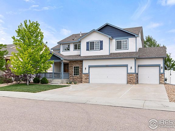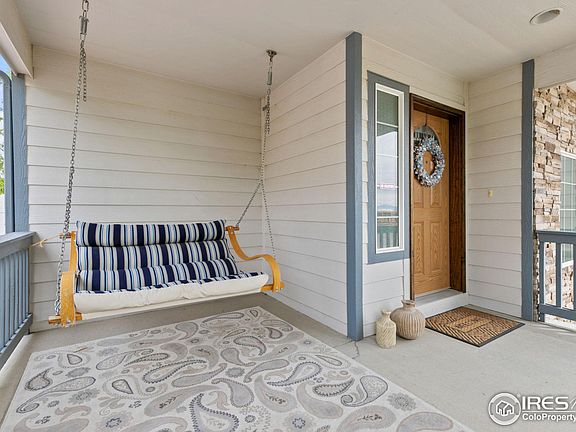 Welcome to this stunning 4-bedroom, 4-bath classic beauty nestled in the emerging community of Johnstown. Located near the very end of Sycamore Avenue as it terminates in a cul-de-sac, this quiet location is steps away from the new school campus. As you approach the home, notice the expansive covered front porch, which is perfect for relaxation on the calming porch swing. Delightfully, it is fully enclosed with a handrail to keep animals and children safe. Step inside to a gracious foyer that is airy and bright with white painted woodwork and sweeping windows that provide abundant natural light. The entire main level boasts a gorgeous LVP floor for beauty as well as durability. The kitchen, with elegant and functional granite countertops, gas range, under cabinet lighting, and large pantry is a chef's dream. Upstairs, the retreat-like primary suite is spacious and easily accommodates large furniture. The primary bath is a luxury bath with double vanities, linen closet, large closet, 45" shower & soaking tub. 2 other upstairs bedrooms enjoy serene mountain views and share a full hallway bath with a 58" wide vanity, and linen closet. The basement adds even more lifestyle flexibility, providing a family room, a "flex room" (that can be converted to a bedroom), and a bathroom. Stepping into the backyard is a snap from the dining room, and there is ample room for entertaining with a 323 sq. ft patio. The fully fenced back yard with impressive landscaping features pavers, mature trees, and a storage shed complete with power! One of the most impressive aspects of this pristine home is the jaw-dropping 871 sq. ft. garage with epoxy floors and a keypad entry. There are 4 parking bays (1 tandem) as well as storage or a workshop area. This impeccable home is in popular Johnstown and has NO Metro Tax, is convenient to I25, and offers a rare combination of tranquility and accessibility. This is the perfect opportunity to live the Colorado lifestyle you've dreamed of.