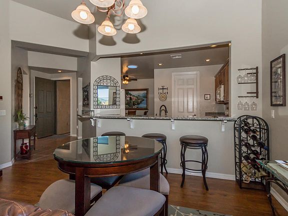 This beautiful end unit townhome features an open floor plan, cathedral ceilings, freshly paint inside, newly tiled fireplace and flooring. Highly upgraded with new SS appliances. The large master suite has a slider door to the patio and newly installed wall of closets. The guest room features a slider to the private front courtyard. Granite counters & new subway tile back splash provide the perfect compliment to the interior color scheme. This home is open and bright with a picture window to the common area. The water softener will convey with the home. This is a must see townhome within walking distance to The Club for golf, tennis, pickle ball, restaurant, pools and Athletic Club with state of the art equipment. Enjoy walking home from dinners right at The Club. New Photos Coming.