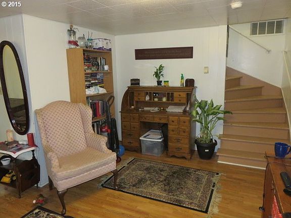 Large living room in comfortable home in a quiet residential neighborhood only a few blocks from downtown. Nice yard and shade trees. Has been a great rental and an affordable home. Large storage building on back of lot has alley access.