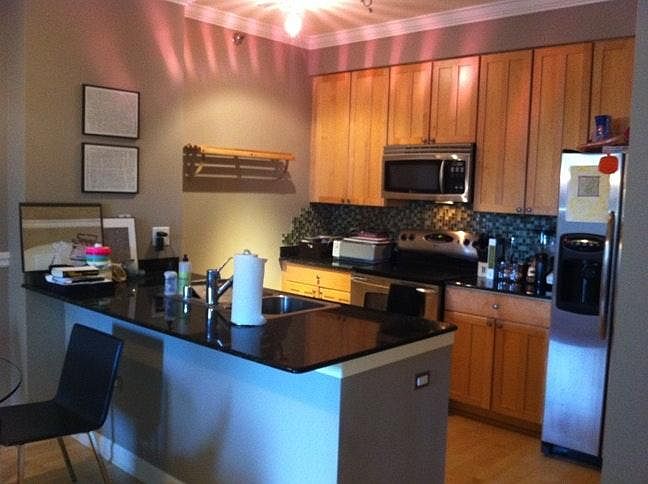 Stunning one bed condo in the excellent River North location. Impeccably maintained home with great open floor plan. Features incl: hardwood floors, custom lighting & closets, balcony with nothing but sky above! Kitchen has granite countertops, stainless appliances, 42" maple cabinets and an island. Amenities include: 24 hr door person, fitness rm, roof deck w/ skyline views. Oversized heated garage for 250 per month