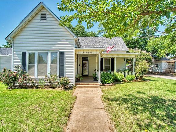 If you are looking for the most picturesque home in southwest Oklahoma on historic Jefferson Street you have found it. This lovely home was beautifully built in 1950 and well preserved with so much original charm. It sets nicely on a corner lot with mature trees that frames the home perfectly, a large covered setting porch with nice shade to enjoy relaxing evenings or peaceful mornings in small town America. When you walk into the home you are greeted with 12' ceilings gorgeous nostalgic of the large windows giving tons of natural light to show off the floors, wood work and fire place. This home is over 1800 square fee. 3 bedrooms, 2 bath. The bedrooms are large and have nice sized closets for ample amounts of storage. This kitchen has nice cabinetry and all appliances are staying, including the washer and dryer! The back yard is large, raised garden beds, chicken coop, above ground pool, small shed and a nice detached garage. Too much to write, Its truly a MUST SEE!