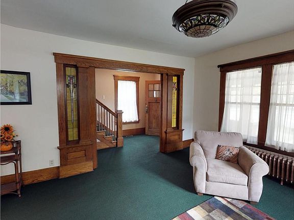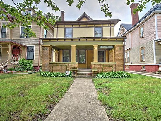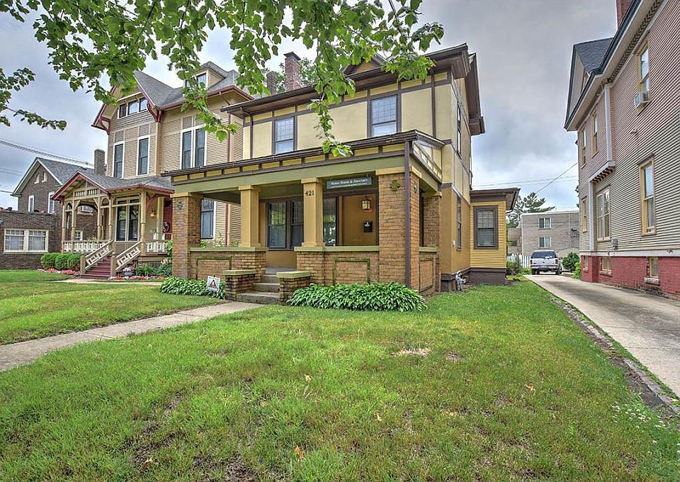 Comfortable historic building is only 3 blocks from downtown Decatur, and is located on redeveloped West Main linking downtown with the Millikin campus. The restored Arts and Crafts style house features oak woodwork, stained glass, and built-in cabinets. Additionally, custom storm windows, insulation, and an efficient heating/air system have been installed. The current owners used the 5-room downstairs as a professional office and the upstairs as an apartment. Downstairs, large rooms with alcoves offer versatile space for home or office. The large modern kitchen opens to a sunny family room and half bath. Front and back stairways lead to the second floor with 3 bedrooms, a sleeping porch, and 2 full baths. Parking is available in front of the building on West Main and in the new concrete parking area behind the building. With its location and features, this building is ideal for a professional office, small business, a home, or a combination. It is a charming building at a great value . . . and the neighbors are wonderful.