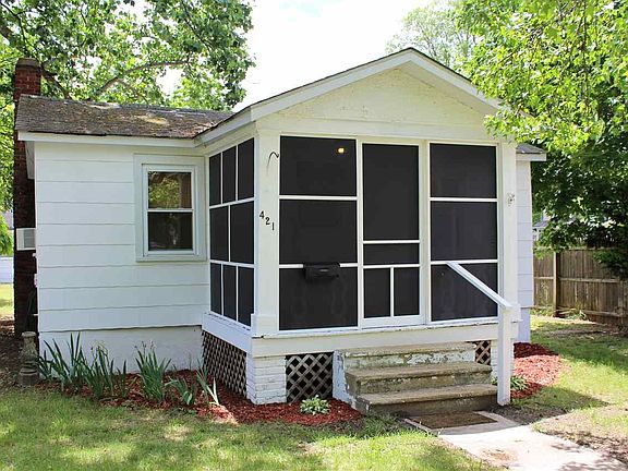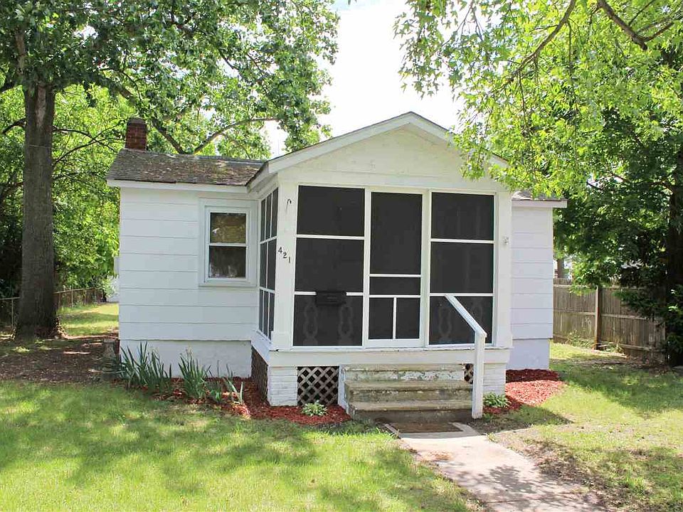 Freshly Painted Inside and Out for Immediate Occupancy! Cozy, 1 bedroom, 1 bathroom bungalow, with cathedral ceilings, new carpet, window air conditioning unit, screened in front porch, covered back deck, is on a corner lot, and has a fenced in yard with privacy height fencing in the backyard. Also, the large yard has room to garden, BBQ, entertain or expand the house. The detached, 2 car garage with automatic door opener, has room for storage, tools or toys. The kitchen has an electric range with self cleaning oven and a refrigerator. The full, unfinished basement has a natural gas furnace and hot water heater, washer and dryer hookups, more storage room, stairs down from the kitchen and a Bilco door for easy access to backyard. Not a Short Sale!