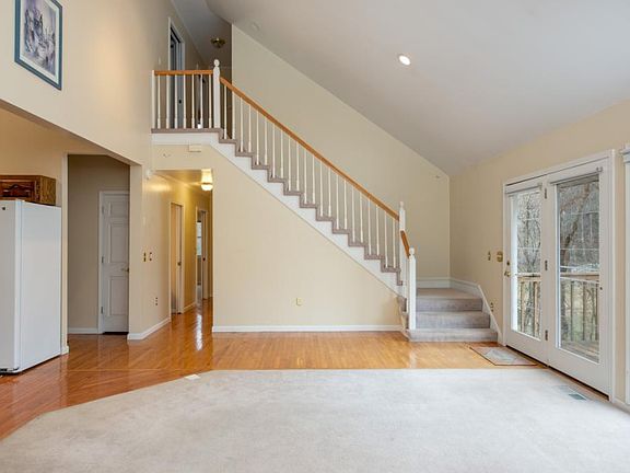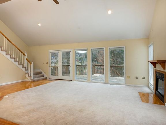 Beautiful 4BR, 3BA contemporary home nestled in a wooded .71 +/- acre lot. Cathedral ceilings and a wall of windows in the living room make for a light and airy space. Kitchen offers plenty of cabinetry and a spacious dining room. Living room leads to a large deck perfect for entertaining. Two car drive under garage offers plenty of storage with a full unfinished basement.