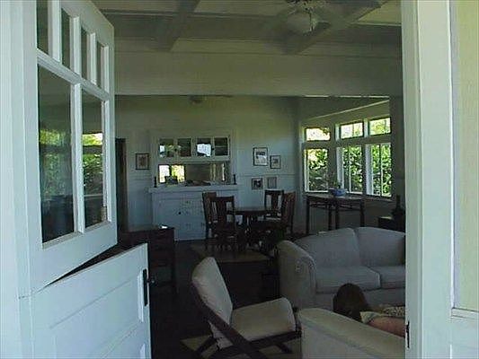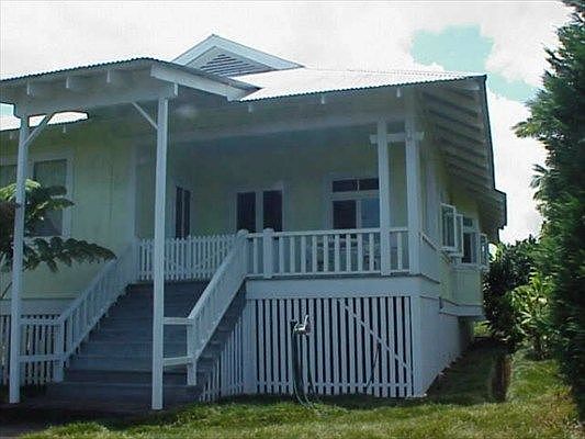 Charming Kama'aina family offers both peek a boo bay views as well as mountain views. The main home boasts two large bedrooms and two full baths as well as an office/sewing room and dutch-door entry to the front lanai. The living/dining area is grand, light and airy with 10' coffered ceilings and the heartwood redwood flooring. The kitchen was upgraded in 1989 as well as the electric and plumbing. A permitted addition was added in 1992 which includes a detached garage bedroom with vaulted ceiling, bath and bonus room. The addition is fully permitted.